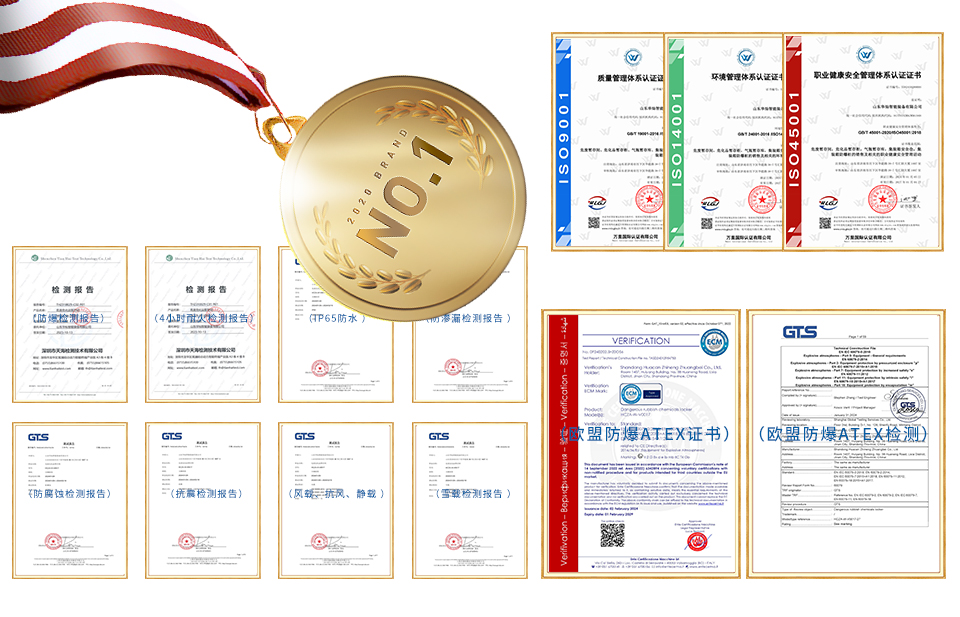 产品经过相关机构检测,具备欧盟防爆ATEX证书、欧盟防爆ATEX报告、防爆检测报告(国内)、耐火检测报告(4小时)、欧盟CE认证、软件注册权、箱体外壳防护等级IP65检测报告、防渗透测试报告、防腐蚀测试报告、箱体隔热保温性能检测报告、箱体抗震性能试验报告、雪载荷测试报告、静载荷测试报告、抗风测试报告等。
